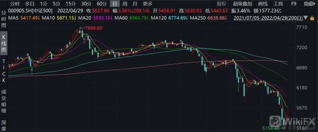 如上图,截至4月末,中证500市盈率-TTM为16.95,处于历史上1.02%分位点,已经处于非常低的估值水平。