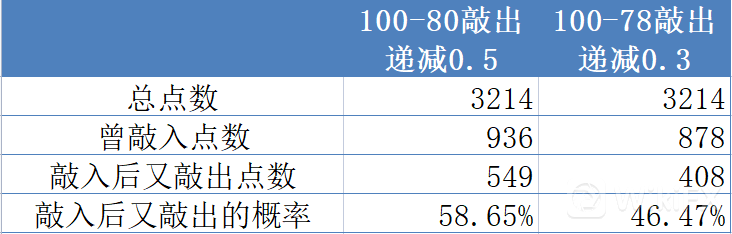 据历史数据看出,这段区间内,总点数3214个,曾敲入点数947个,敲入后又敲出点数380个,敲入后又敲出的概率为40.13%。