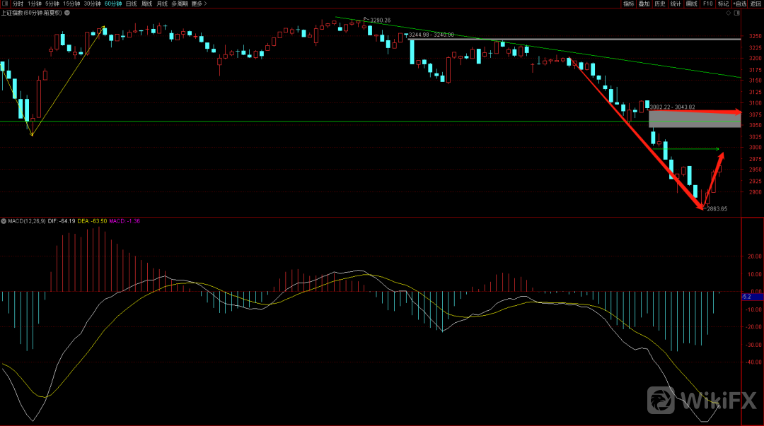 大盘低开高走,在出现五分钟顶背驰结构后出现向下,短期已经濒临3000点压制,这个位置需要保持谨慎,大概率在出现十五分钟的背驰或者二卖结构将再次回落。注意观察量能是否继续维持收缩,一旦出现则高抛是个不错的选择。