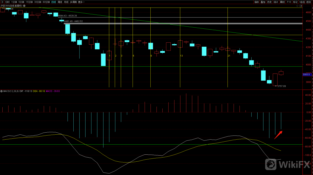 沪深300短期关注日线的macd是否持续收缩,只要能够构筑日线底背驰结构将有望迎来一段反弹走势。根据斐波拉契数列下一个变盘点有望出现在五一过后。