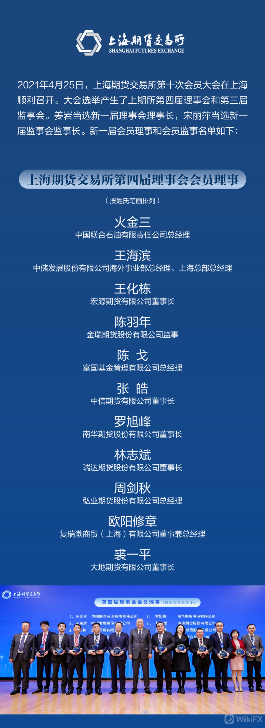 大会选举产生了上期所第四届理事会会员理事11席和第三届监事会会员监事3席,江西铜业股份有限公司副总经理、金瑞期货监事陈羽年当选第四届理事会会员理事。