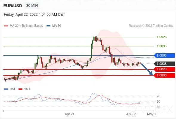 交易策略:在1.0865之下,看跌,目标价位为1.0820,然后为1.0800。