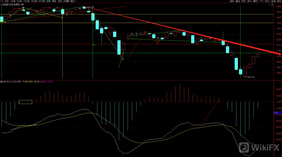 大盘继续向上反弹,但从量能可以看出已经呈现衰竭状态,目前五分钟已经有多个背驰点,后续注意2940点支撑,在这个位置没有跌破之前大概率还不会有再次新低的可能出现。而上方短期将面临下降趋势线的强压,注意抛压风险。