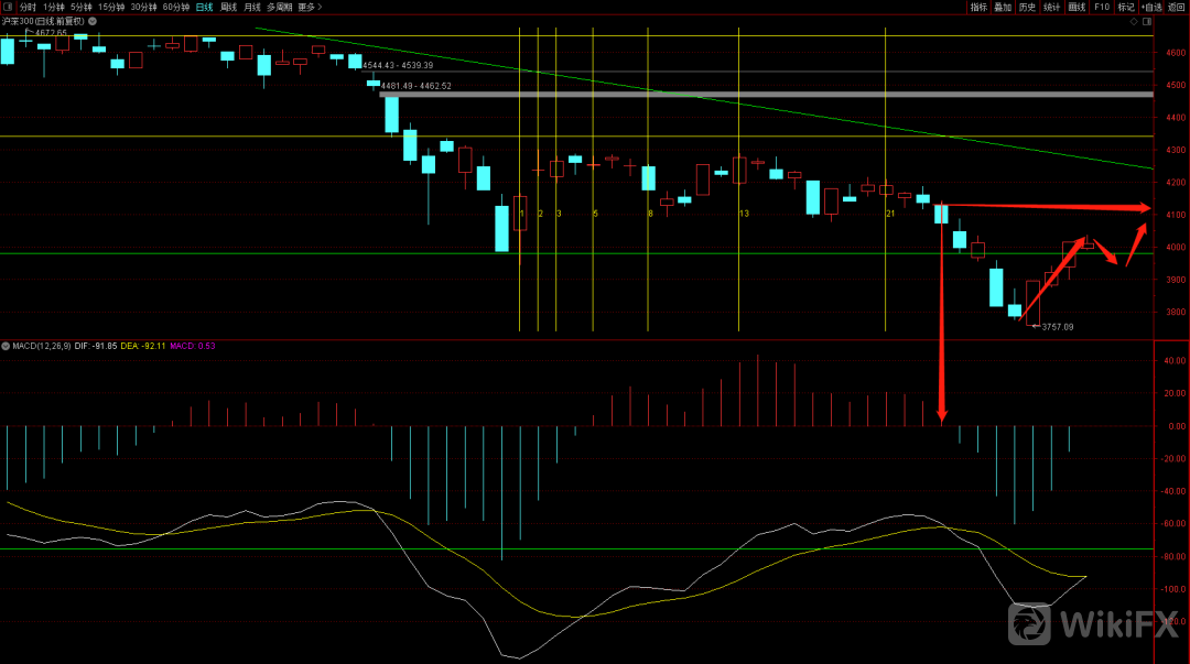 沪深300大概率会有日线底背驰结构,注意观察macd第一根红柱的释放程度,如果无法强势则反弹强压将出现在4150附近,如果能够出现强势则有希望尝试4300点附近的压制。