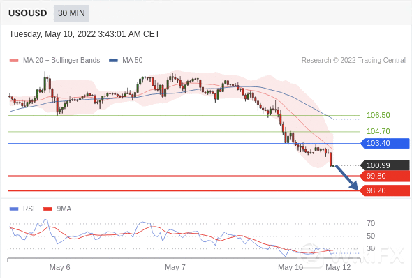 交易策略:在103.40之下,看跌,目标价位为99.80,然后为98.20。