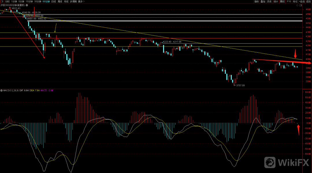 沪深300日线macd量柱开始钝化,接下来两天需要关注是否会出现持续,一旦出现后续的反弹空间将出现衰减,而下方首要支撑需要注意3921在没有跌破之前大概率还有望延续反弹走势。