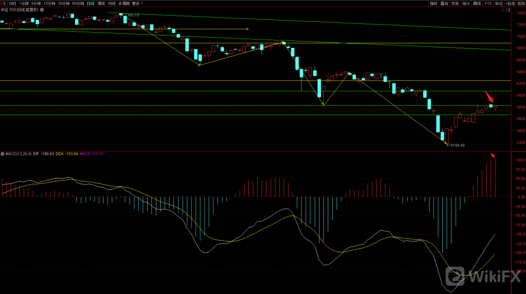 中证500短期虽然出现日线三卖结构,但有扩张的状态出现,注意把控好节奏点,好一点大概率会向上去试探5900到6000点这个区间,一旦有到达这个位置区间需要注意强抛压。大概率会出现再次回落的走势。