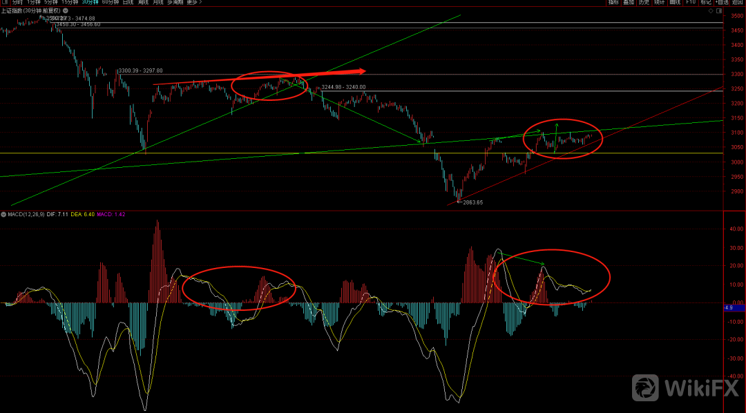 大盘继续维持强势走势,短期从三十分钟结构看已经处在末端变盘节口上,需要观察是否走出四月初的结构形态,而从周期看大概率还有三四天的周期有望出现变盘走势。假设后续的反弹压制是在3180附近,那3056将会是一个关键支撑位,届时后续行情要出现下跌回落首先需要先跌破这个位置。