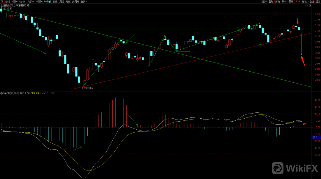大盘高开在前高附近遇到压制后出现回补缺口,短期的量能表现出动能不继的状态,注意周一是否能够出现补量,如果无法出现补量短期有可能出现一段回调走势,关注3100点支撑,如果出现跌破则下方支撑有望出现在3014附近。