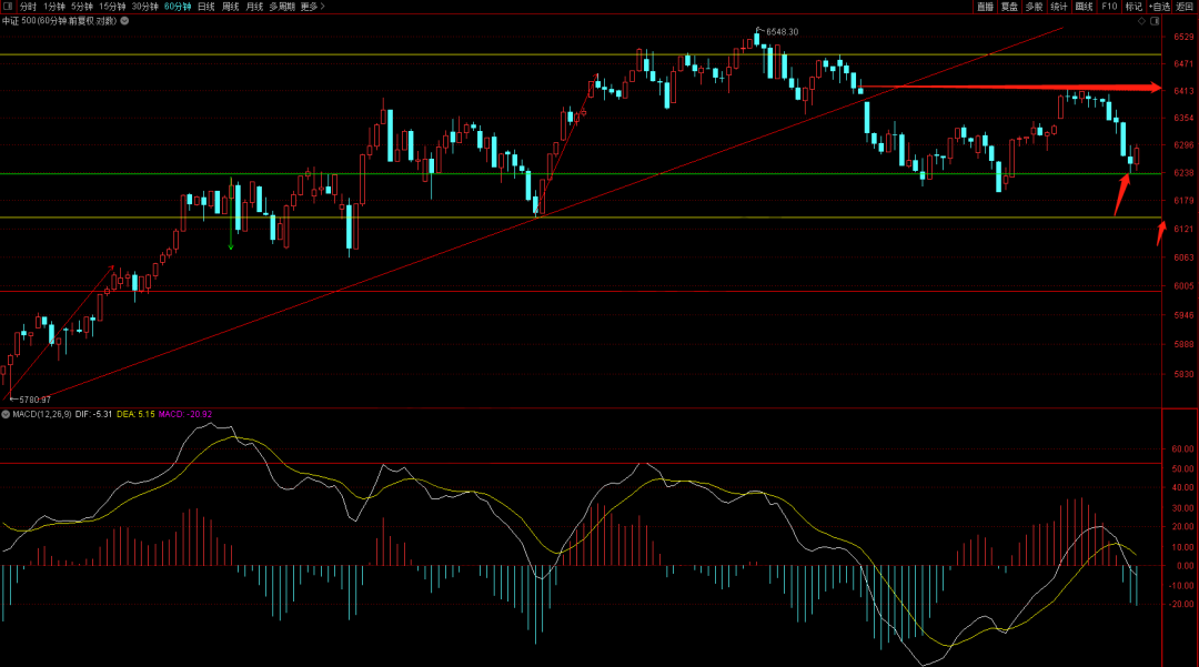 中证500短期回落在6238附近遇到支撑后出现回升,短期关注6413点压制,如果能够突破有望去挑战前期的高点。而下方只有跌破6121才会破坏掉这段反弹走势。