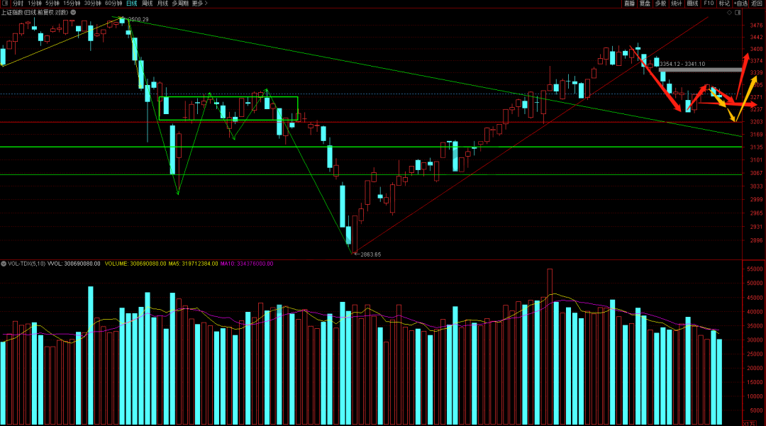 大盘出现宽幅震荡走势,短期大概率要出变盘走势,由于日线底分的出现,即使选择了向下大概率也有机会再次向上反弹,注意观察3256点是否有效跌破,如果跌破则有回到3195点的概率出现,而如果能够向上突破3331点压制则缺口有望出现回补,下周的收盘将决定着后续八月的走势。