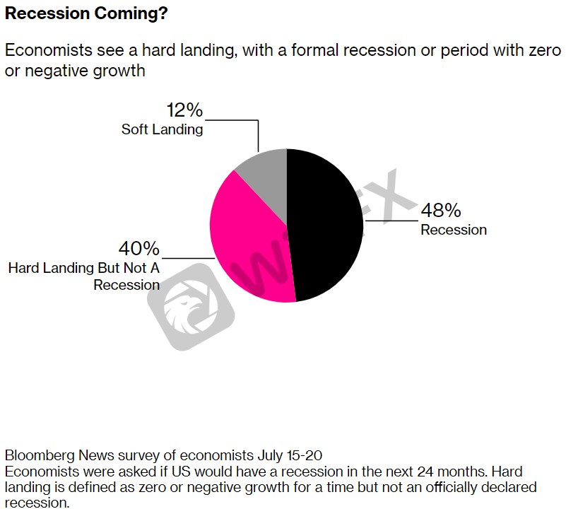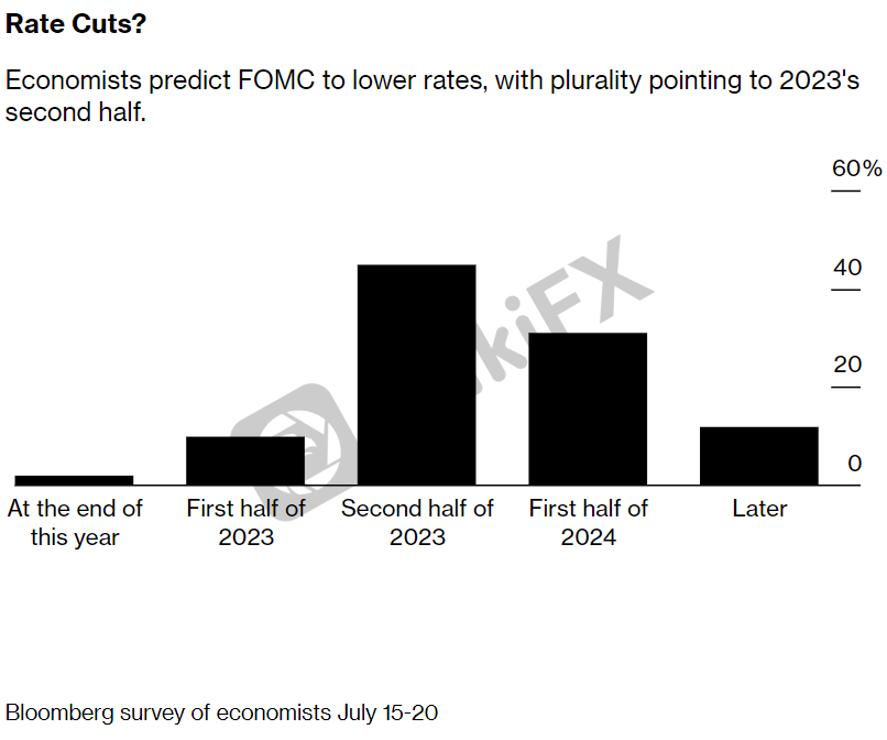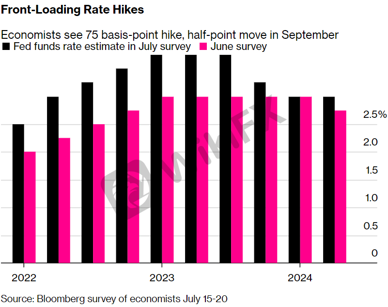而根据彭博的一项调查,经济学家们预计美联储主席鲍威尔可能会在下周FOMC(联邦公开市场委员会)会议上再次加息75个基点后放慢步伐。这一调查是在在7月15日至20日进行的,受访者包括44位经济学家。