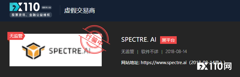 FX110早在2018年就已经将SPECTRE. AI平台列为虚假交易商!