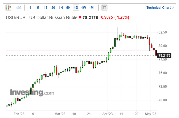 此前于上周五(4月28日),俄罗斯央行维持利率不变,惟仍保留了未来加息的可能,提振卢布大幅走强。同时,4月份的高油价也支持了卢布,高油价意味着俄罗斯出口商的出口收入增加。