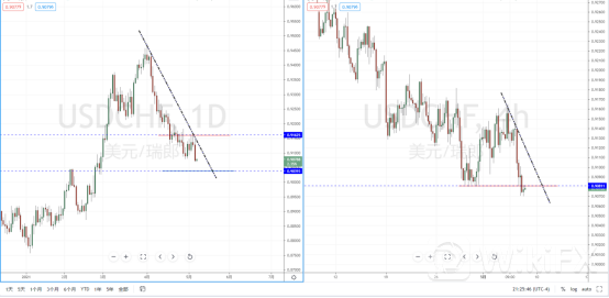 美瑞天图:目前行情继续在上方水平压制带附近受下行,上方压制带在0.91625附近,并且有下降趋势线的压制作用。整体格局处于偏空阶段中,从日内4小时级别,价格短期已经跌破水平带0.90811附近。可适当关注价格回测上方压制后再次走弱的空头机会。