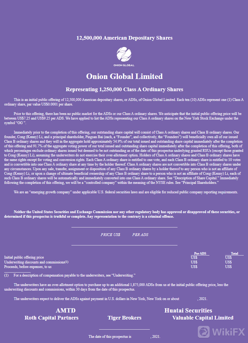 (下称“洋葱国际”或“公司”,股票代码:OG)