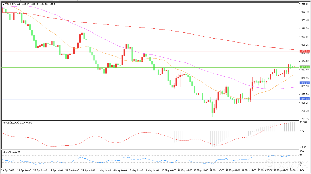 若今晚公布的美国4月核心个人消费支出报告助长了美国通胀见顶的说法,那么该报告可能导致美联储进一步减少收紧货币政策的押注,黄金很可能重回1870美元的高位。